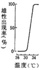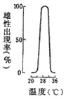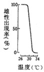 2、选择题  有些动物的性别分化受温度影响。下图是4种爬行动物的卵在不同温度下发育成雌雄个体的比例,其中能表示雄性仅出现在某个很狭窄的温度范围内,而高于或低于此温度范围则出现雌性的是