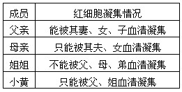 3、填空题 小黄家庭成员间红细胞和血清凝集关系如下表成员红细胞凝集情况