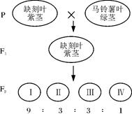 F2?缺刻叶紫茎(A_C_) ?缺刻叶绿茎(A_cc) ?马铃薯叶紫茎(aa C_)?马铃薯叶绿茎(aacc)