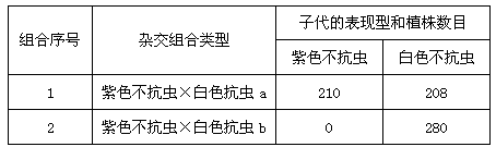 (3)亲本中白色抗虫a、白色抗虫b的基因型分别是____________。