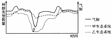 1、选择题 下图表示气候变化对甲、乙生态系统中种群类型数量的影响。据图分析,下列叙述正确的是