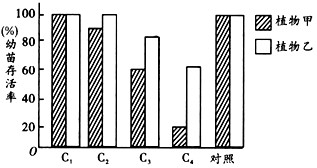 ②.在下面画出直方图,比较甲、乙两种植物幼苗的存活率。