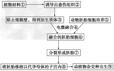 (1)①中选的植物材料细胞中,必须有的细胞器是________________。①→②过程通常需要一定的营养和________________条件。