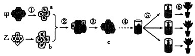 (1)①过程发生的化学变化是__________;将若干a和b等量混合后转移到培养基上培养,再经过②和③,c的细胞类型有__________;在采用化学法进行过程②时,一般是用__________作为诱导剂。植物体细胞杂交与自然状况下的生殖细胞杂交相比,前者的主要意义是____________。