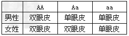 3、选择题 人类单眼皮与双眼皮的遗传规律如表所示(A、a表示相关基因):