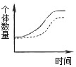 3、选择题 在光照下,将等细胞数量的衣藻和大肠杆菌分别接种到只含无机盐的培养液中培养,结果是(虚线和实线分别表示大肠杆菌和衣藻的生长曲线)