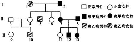 5、连线题 如图是患甲病(显性基因为A,隐性基因为a)和乙病(显性基因为B,隐性基因为b)两种遗传病的系谱图。现已查明Ⅱ3不携带致病基因。据图回答下列问题: