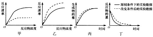 D.图丁可以表示多酚氧化酶浓度降低1/5时,反应物的量与时间的变化关系