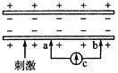 5、选择题 如下图所示,如果在电极a的左侧给一适当刺激,则电流计指针偏转的情况是
