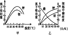 2、选择题 图甲表示温度对植物吸收钾离子和铵根离子的影响;图乙表示氧分压对植物吸收钾离子和铵根离子的影响。下列哪项不属于据图甲和图乙得出的结论: