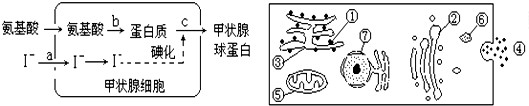 3、选择题 甲状腺细胞可以将氨基酸和碘合成甲状腺球蛋白,并且将甲状腺球蛋白分泌到细胞外,其过程如下图所示。下列叙述错误的是