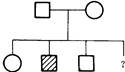 5、选择题 这一家族中有一成员患一种常染色体的隐性疾病。问第四个孩子患这种病的机率是多少(见右图,阴影代表换病的)?