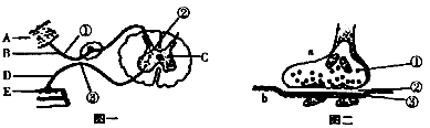 A.图一①②③组成了一个完整的反射弧,①表示传入神经
