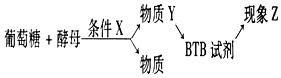 2、选择题 下图是酵母菌发酵实验示意图,其中X、Y、Z分别代表