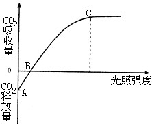 A.B点时,植物光合作用吸收的CO2的量等于A点释放量