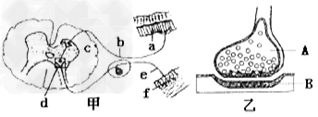 (1)甲图中f表示的结构是_________,乙图是甲图中______(填字母)的亚显微结构放大模式图,乙图中的B是下一个神经元的___________。