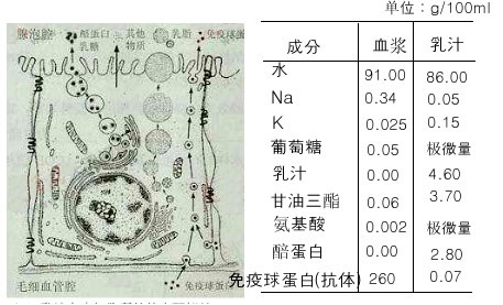 (2)与血浆相比,乳汁中特有的成分是___________________。