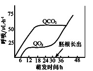 2、选择题 某研究性学习小组研究西瓜种子萌发时的代谢,得到如下曲线图(QCO2表示单位时间CO2释放量,QO2表示单位时间O2吸收量)。下列相关叙述中,不正确的是?