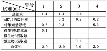 实验材料:三种微生物(A~C)培养物的纤维素酶提取液,提取液中酶蛋白浓度相同。