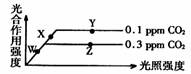 2、选择题 图中,W、X、Y、Z四点中,光照强度不能限制光合作用强度的是:①W;②X;③Y;④Z?