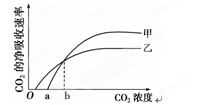D.甲、乙光合作用强度随CO2浓度的增大而不断增强