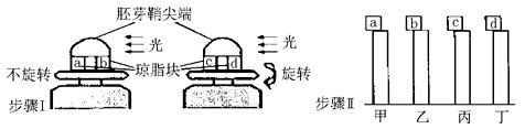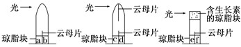 2、选择题 下图为燕麦胚芽鞘向光性实验,此实验主要说明
