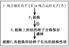 根据预期,F1植株所结种子分株保存、播种后长出的植株应既有高秆,又有矮秆。但研究人员发现有一植株所结的种子后代全部表现为矮秆,并据此推断F1植株中有纯合矮秆。通过分析,认为F1纯合矮秆植株的可能有二种原因:一是由于母本去雄不彻底,母本自交;二是由于父本在减数分裂形成花粉时,一个高秆基因发生了基因突变。为了确定是哪一种原因,可以通过分析F2矮秆植株上所结种子有芒和无芒的表现情况作出判断: