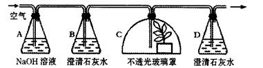 4、选择题 下图是测定植物某一生命活动过程的装置,从左侧泵入空气后,会产生某些实验现象,下列几种说法中错误的是