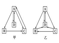 D.因捕食关系而建立的食物链中,能量最少的是乙图中B所处的营养级