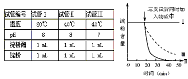 2、选择题 下列是有关某种淀粉酶的实验,处理方式及结果如下表及图所示。依此判断下列有关叙述正确的是