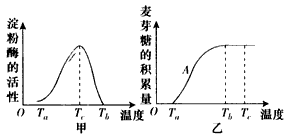 B.图甲中Ta和Tb对酶活性的影响有区别