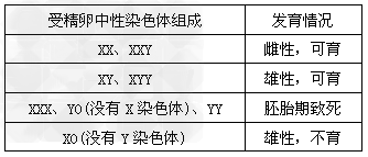 4、填空题 果蝇为XY型性别决定,与人的性别决定方式不同的是,果蝇由受精卵中的X染色体的数目决定雌性或雄性。下表为果蝇受精卵中性染色体组成及发育情况,请分析回答:
