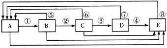 5、连线题 生态系统中生物与环境之间,生物不同个体之间存在着能量流动、物质循环及信息传递,三者的相互协调,是生态系统正常运转的动因,是生态系统的基本功能。下图是某生态系统中碳循环的示意图,图中A表示化学物质,B、C、D、E表示生态系统中的不同生物,请据图回答下列问题。