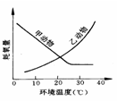 3、选择题 右图表示两类动物的耗氧量与环境温度的关系,请分析甲、乙两种动物