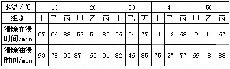 3、填空题 为探究洗衣粉加酶后的洗涤效果,将一种无酶洗衣粉分成3等份,进行3组实验。甲、乙组在洗衣粉中加入1种或2种酶,丙组不加酶,在不同温度下清洗同种化纤布上的2种污渍,其他实验条件均相同,下表为实验记录。请回答下列问题。