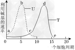 2、选择题 用放射性同位素分别标记U和T的培养基培养蚕豆根尖分生区细胞,观察其有丝分裂周期为20小时,根据这两种碱基被细胞利用的速率,绘制成的曲线如图所示。下列对此结果的分析中,不正确的是?