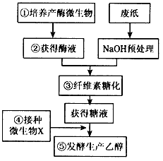 4、连线题 现在大力提倡无纸化办公,但是仍然不可避免的每年要产生大量的废纸,其主要成分是木质纤维,人类正努力将其转化为一种新的资源--乙醇。下图是工业上利用微生物由纤维素生产乙醇的基本工艺流程,请回答相关问题: