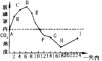 4、选择题 将一植物放在密闭的玻璃罩内,置于室外进行培养,假定玻璃罩内植物的生理状态与自然环境中相同。用CO2浓度测定仪测得了该玻璃罩内CO2浓度的变化情况,绘制成如下图的曲线,下列有关说法正确的是