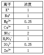 2、选择题 科学家在利用无土栽培法培养一些名贵花卉时,培养液中添加了多种必需化学元素。其配方如下表(培养液浓度mmol/L):