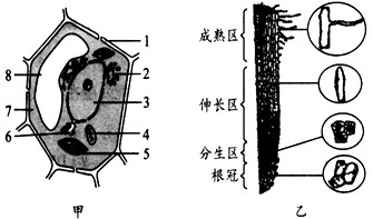 4、连线题 甲图是植物细胞亚显微结构模式图,乙图是小麦根尖结构模式图,据图回答(括号内填标号,横线上填名称)。