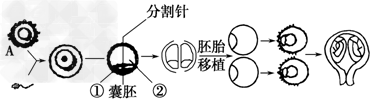 (2)进行胚胎分割时,应选择发育到__________时期的胚胎进行操作(在操作时要注意将___________均等分割)。