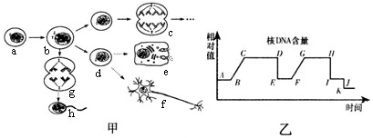 (6)若图乙是上述细胞的核DNA变化的相对值,则基因重组发生在阶段________(用字母表示);若在图乙中A点将核DNA带上同位素标记后放在不含同位素标记的地方培养,则在GH段可检测到有放射性的脱氧核苷酸链占___________。