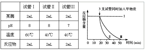 实验研究pH对酶活性的影响,准备5支含有等量酶溶液但pH各不相同的试管,每支试管加1块1cm3的正方体凝固蛋白块,试管均置于25℃的室温条件下,将各试管蛋白块消失的时间记录于下表:
