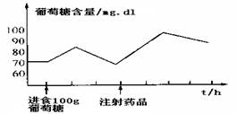 5、选择题 下图为某患者血糖含量的变化曲线,试判断注射的药品最可能是?
