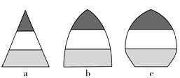 1、选择题 下图示种群年龄组成的三种类型,解读此图可获得的信息是