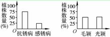 4、选择题 小麦的毛颖和光颖是一对相对性状(由基因P、p控制),抗锈病和感锈病是一对相对性状(由基因R、r控制),控制这两对相对性状的基因独立遗传。以纯种毛颖感锈病植株(甲)和纯种光颖抗锈病植株(乙)为亲本进行杂交,F1均为毛颖抗锈病(丙)。再用F1与丁进行杂交,F2有四种表现型,对每对相对性状的植株数目作出的统计结果如图所示,则丁的基因型是