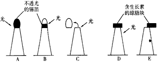 (1)不生长也不弯曲的是___,生长且向光弯曲的是__,生长但不弯曲的是___,生长且向左弯曲的是___。