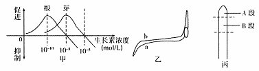 C.丙图A段产生生长素,只能向B段极性运输而不能横向运输