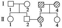 2、选择题 如图为某种遗传病的家系图,请计算出Ⅱ2与Ⅱ3的子女发病概率是