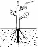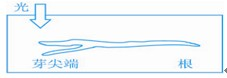 1、选择题 如下图,在太空环境有一株水平方向伸展的豌豆幼苗放置在一不透明的容器内,上侧开一小孔,则根茎生长的特点是?